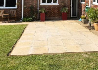 We offer a wide range of materials, including Indian sandstone, porcelain, brick, and concrete slabs. Each option has its own look, texture, and durability, and we’re happy to advise on what suits your space and budget best.
